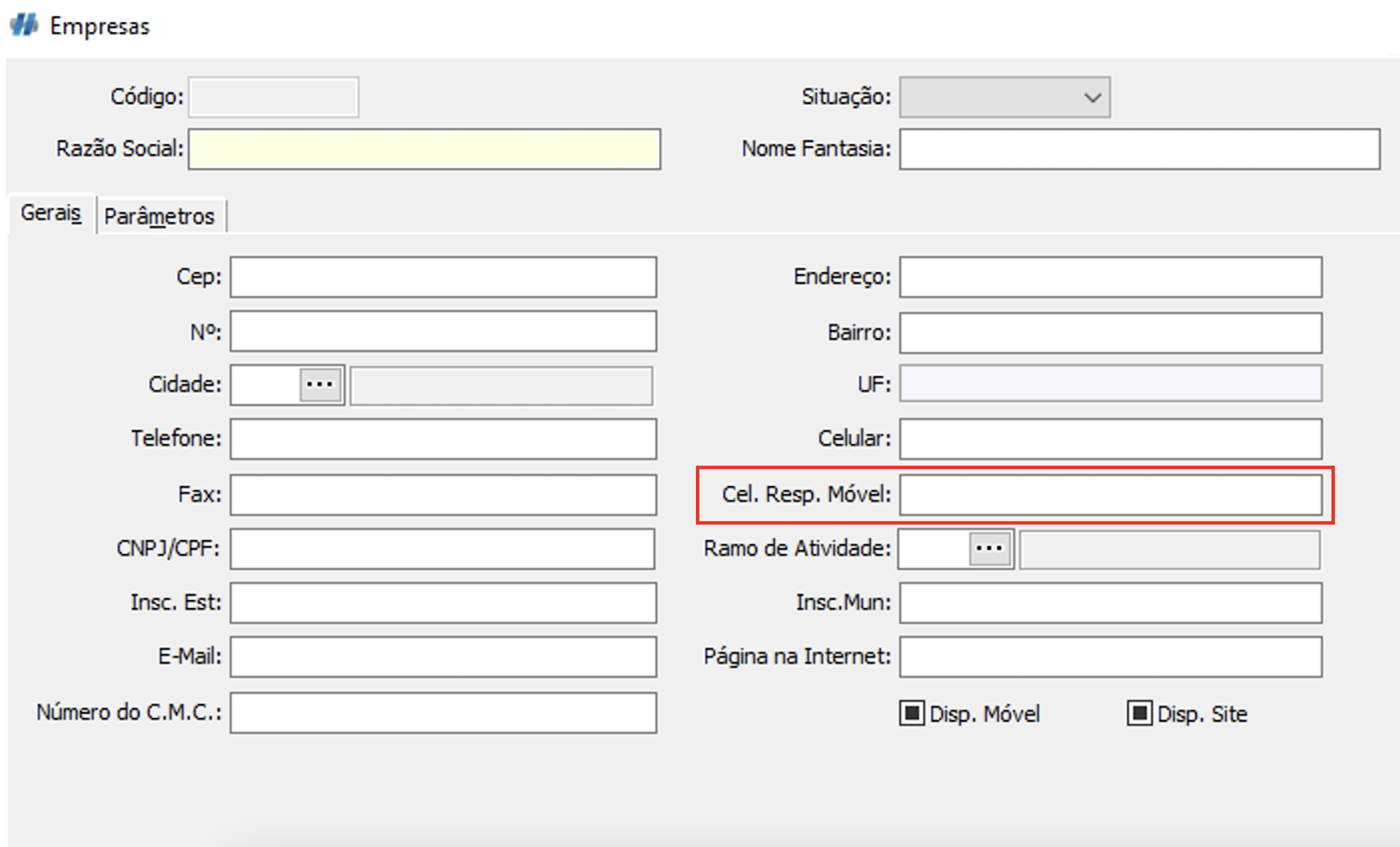 * **Cel. Resp. Móvel**: Certifique-se de que esse campo está preenchido com o número de **whatsapp** do responsável pelo HsMóvel.<br>